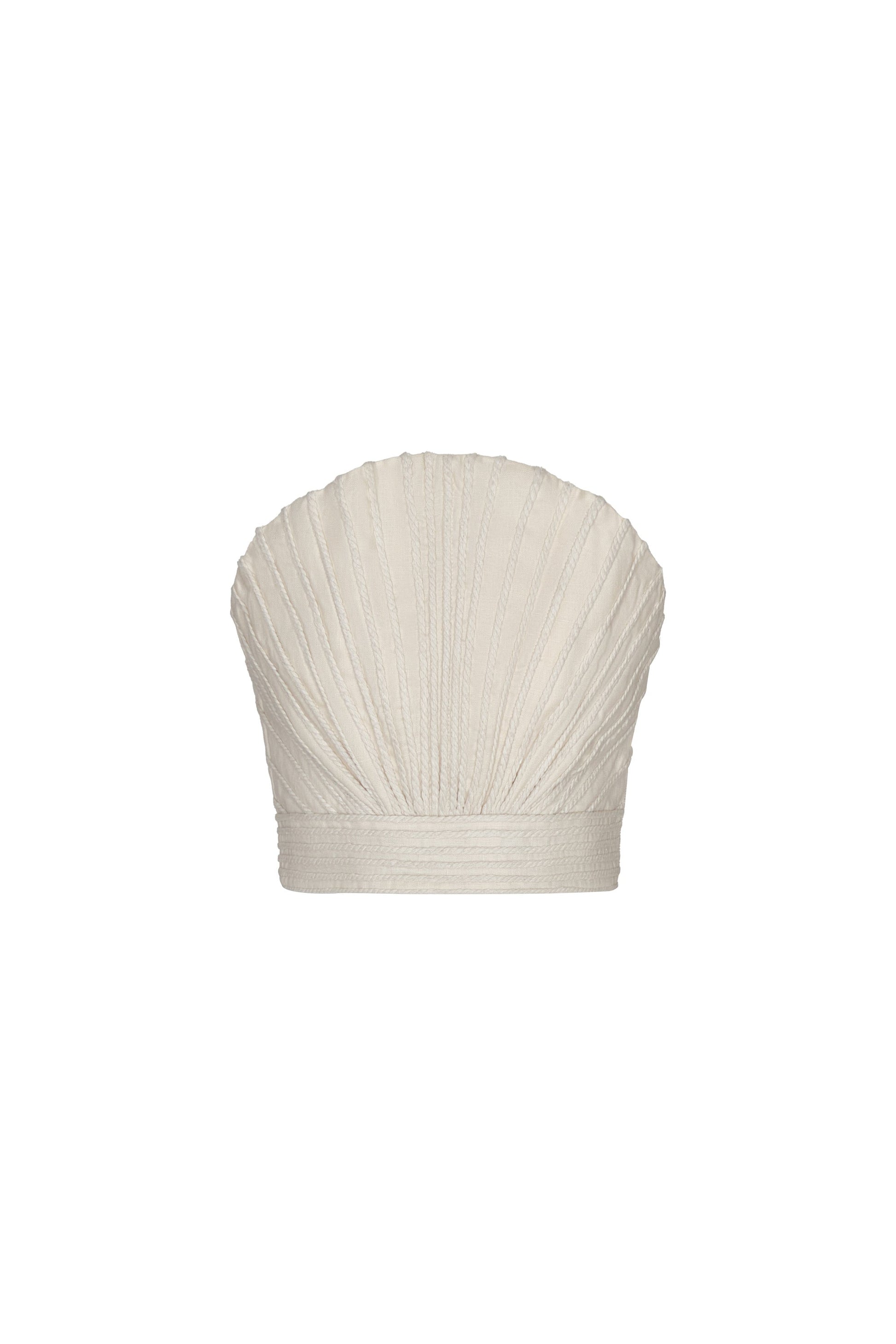 Embroidered top in ivory, crafted in linen. Inspired by the gentle sea breeze, this design blends lightness with natural elegance.